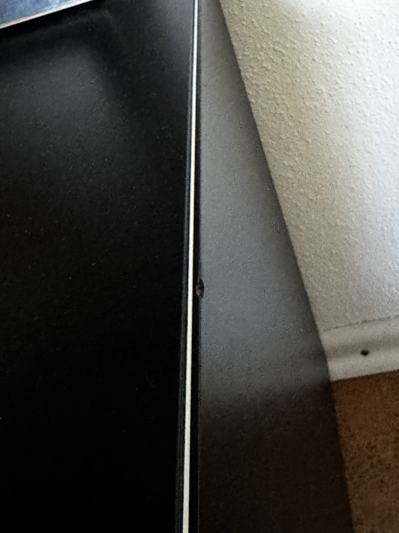 Containerfront: hinterdrucktes Glas (Marmormuster), Klappe öffnet nach unten