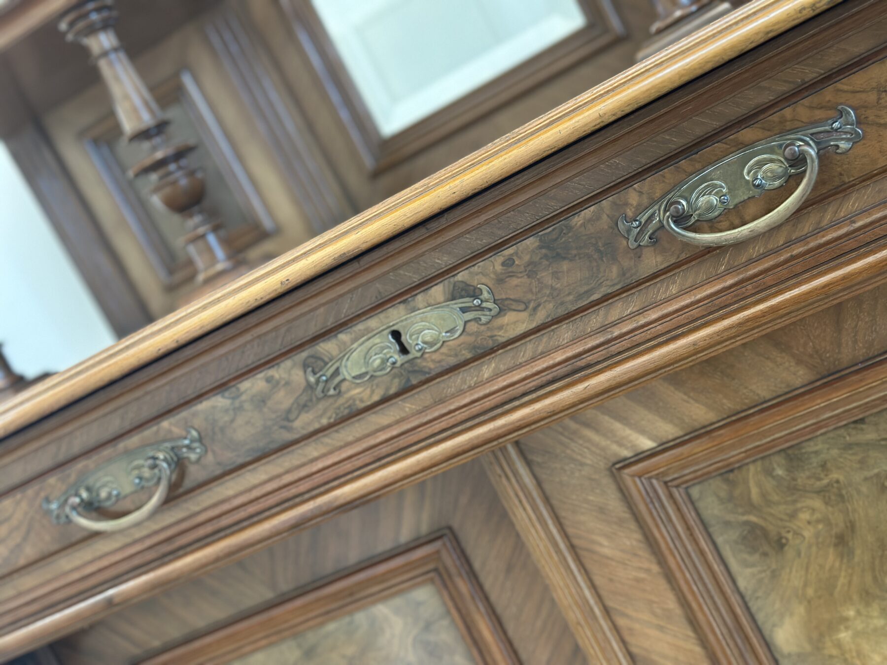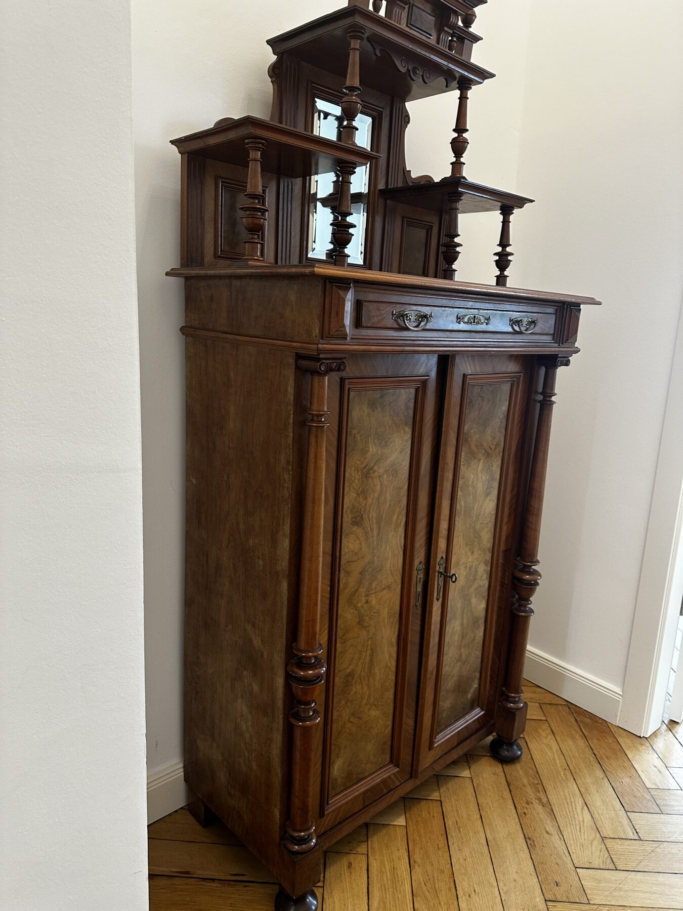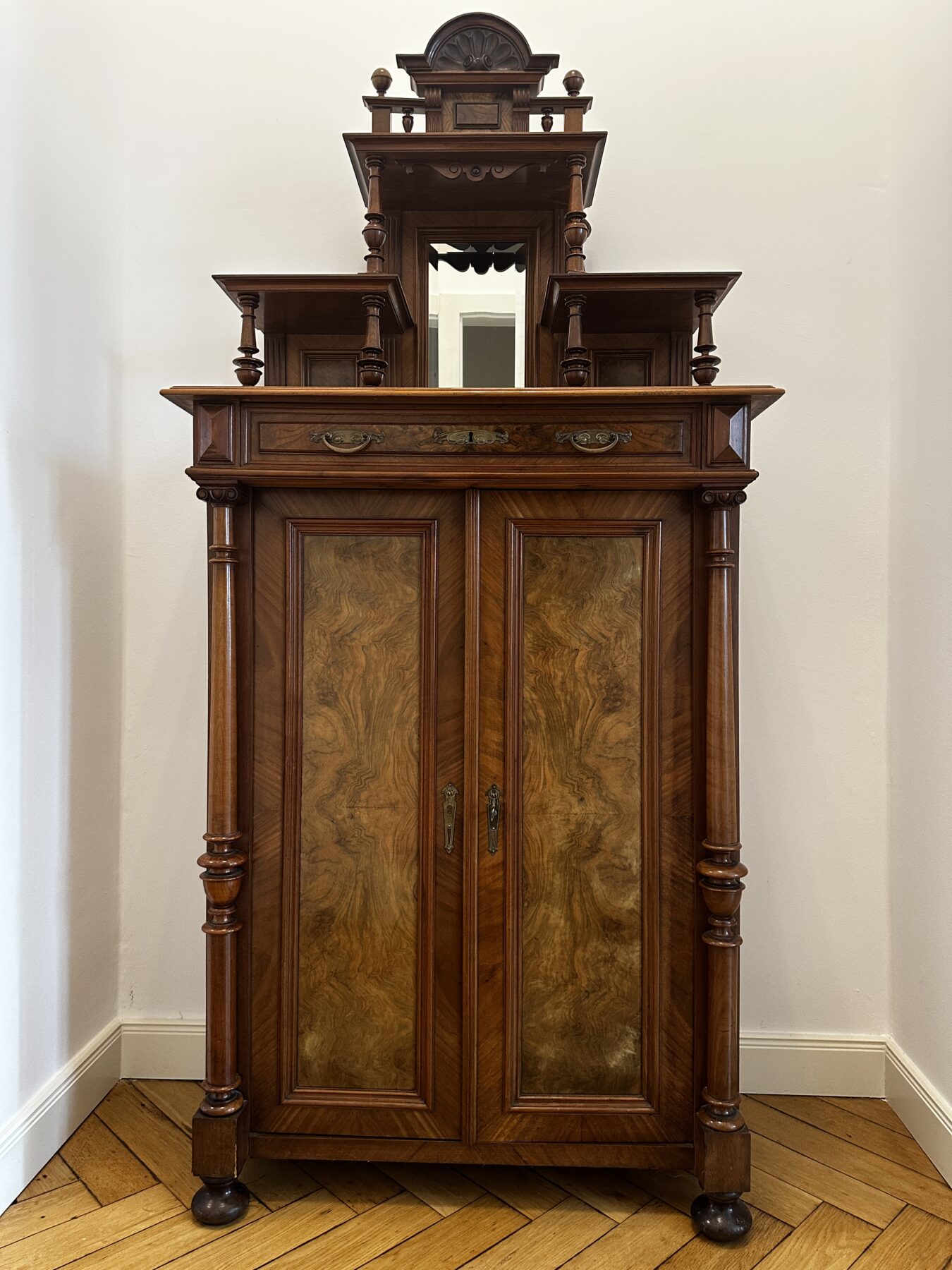 Antiker Gründerzeit-Aufsatzschrank um 1880 – Massivholz mit edlem Nussbaumfurnier
