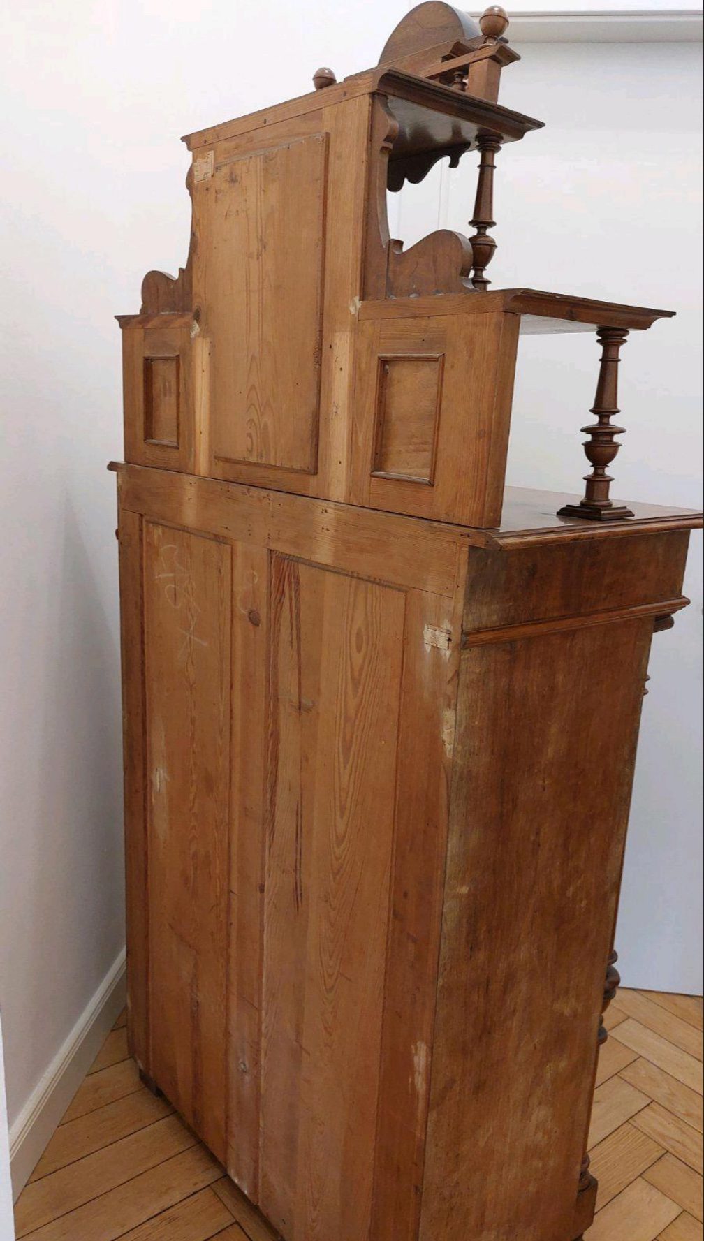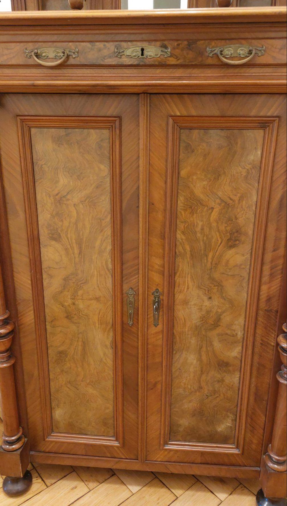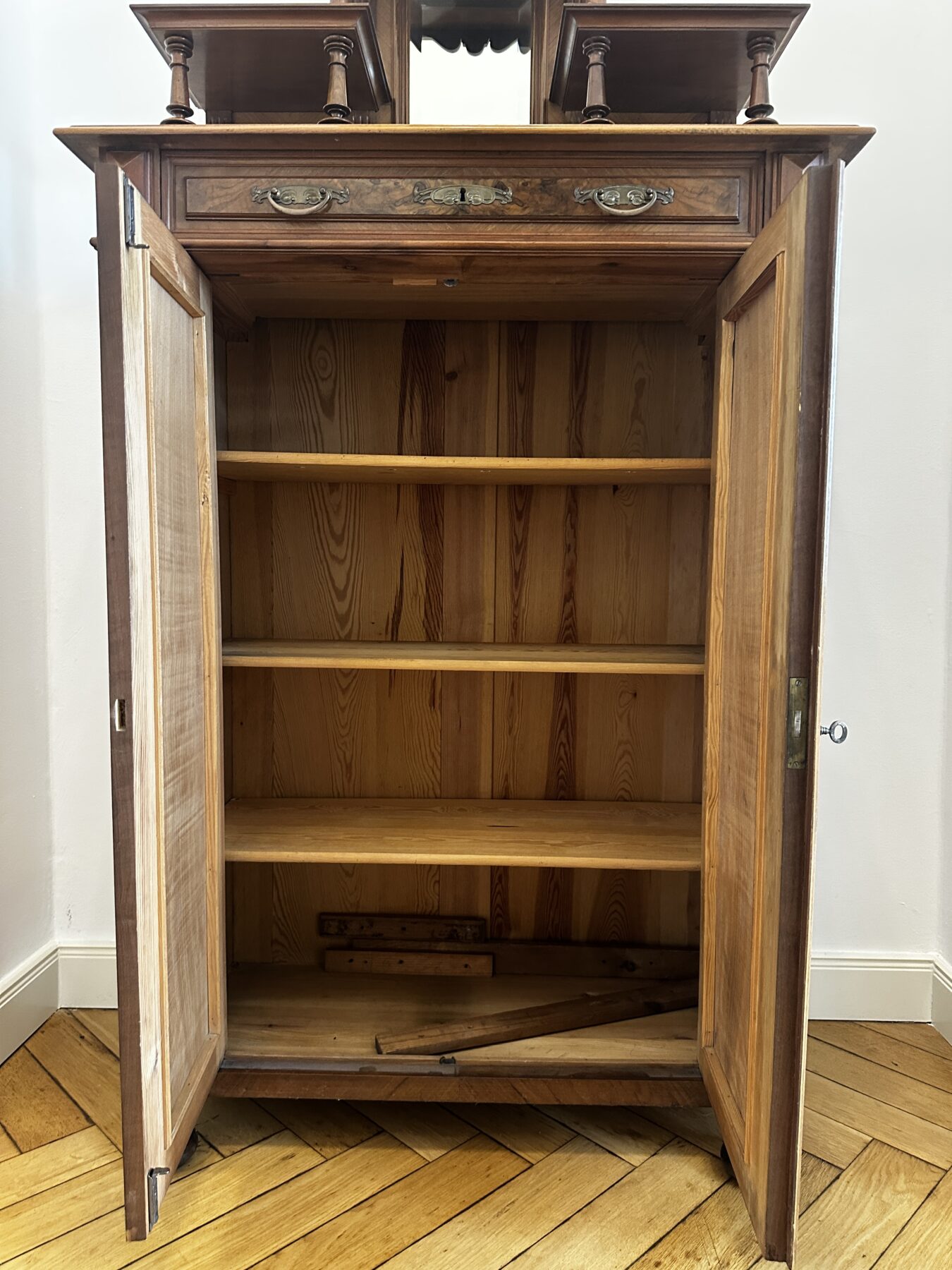 Antiker Gründerzeit-Aufsatzschrank um 1880 – Massivholz mit edlem Nussbaumfurnier