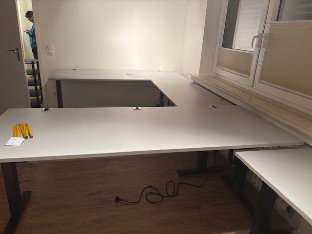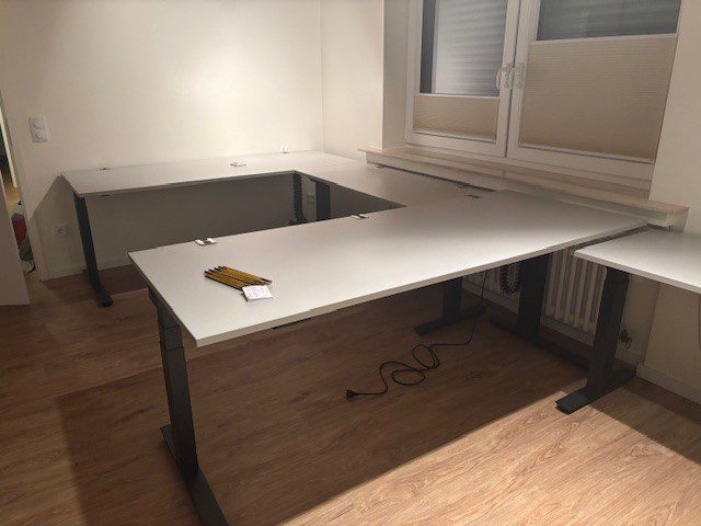 - Doppelteleskophub, inkl. 3x Kabeldurchführung Kabelkanal vertikal und horizonta, Bedienelement mit Display und Memoryfunktion Essy-Stop Sensor, CPU-Halter – Dimension 2000/800/650-1250cm