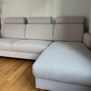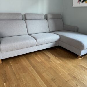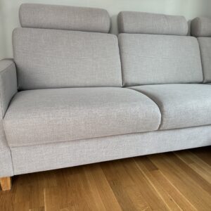 Moderne Eckcouch in hellgrau mit verstellbaren Kopflehnen