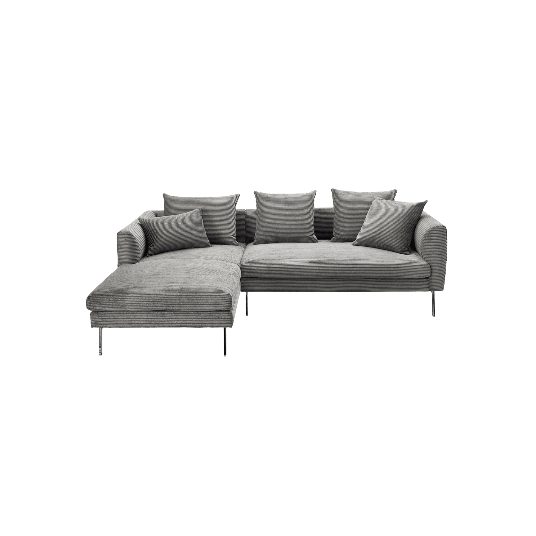 Erleben Sie ultimativen Komfort mit dem Ecksofa „Avignon“ in elegantem Grau. Dieses stilvolle Möbelstück bietet eine Sitzhöhe von 44 cm und eine großzügige Sitztiefe von 62 cm, die zum Entspannen und Verweilen einladen.