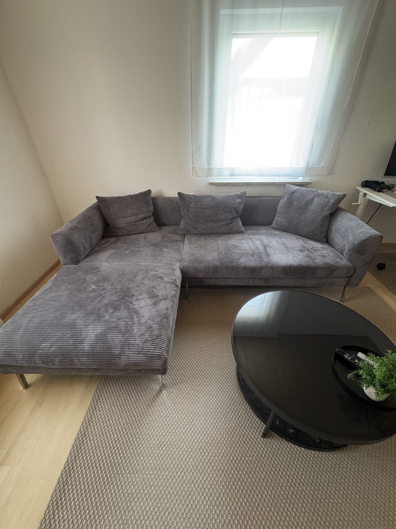 Zum Verkauf steht diese neuwertige Eckcouch (Ottomane links) aufgrund eines geplanten Umzugs zum Jahresende.