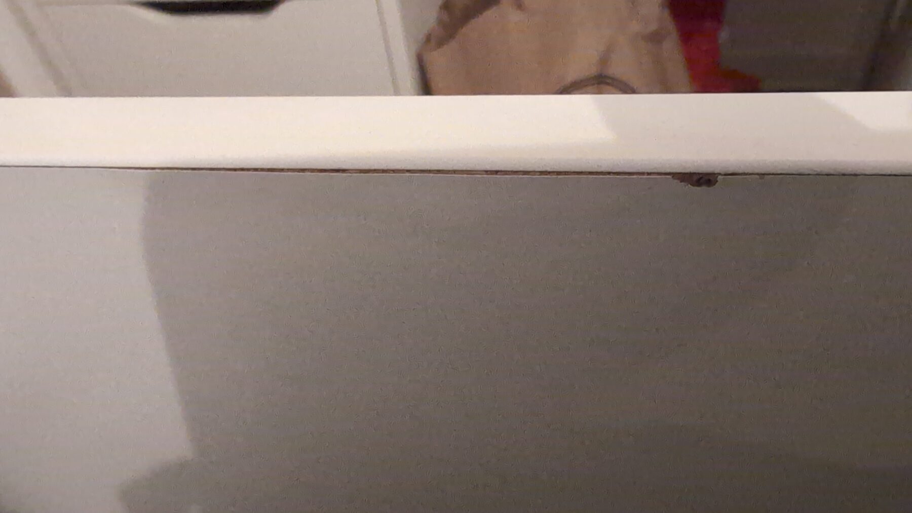 Man Kopfende sowie an ein paar kleinen Stellen an den Schubladen ist das Funier abgeplatzt (beim Umzug passiert) an den Schubladen und am Bettkasten sind kleine lila Verfärbungen, welche aber mit jedem Mal putzen schwächer werden. Auch haben die Ecken und der Bettkasten kaum sichtbare kleine Macken, welche ebenfalls vom Umzug stammen.