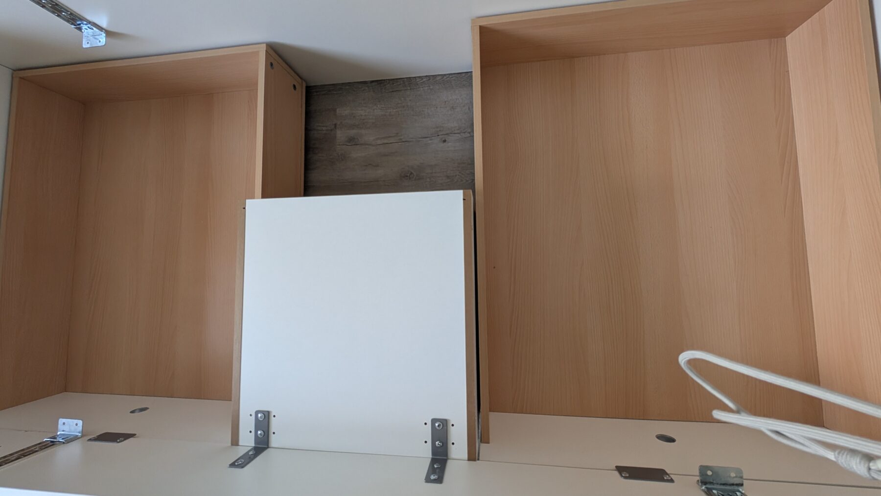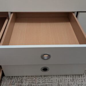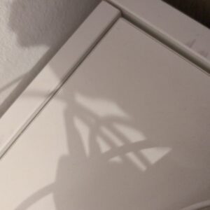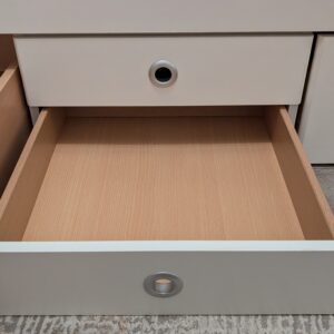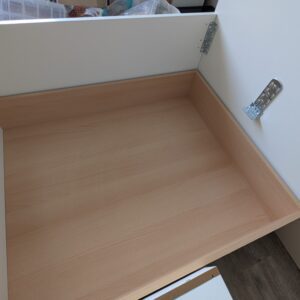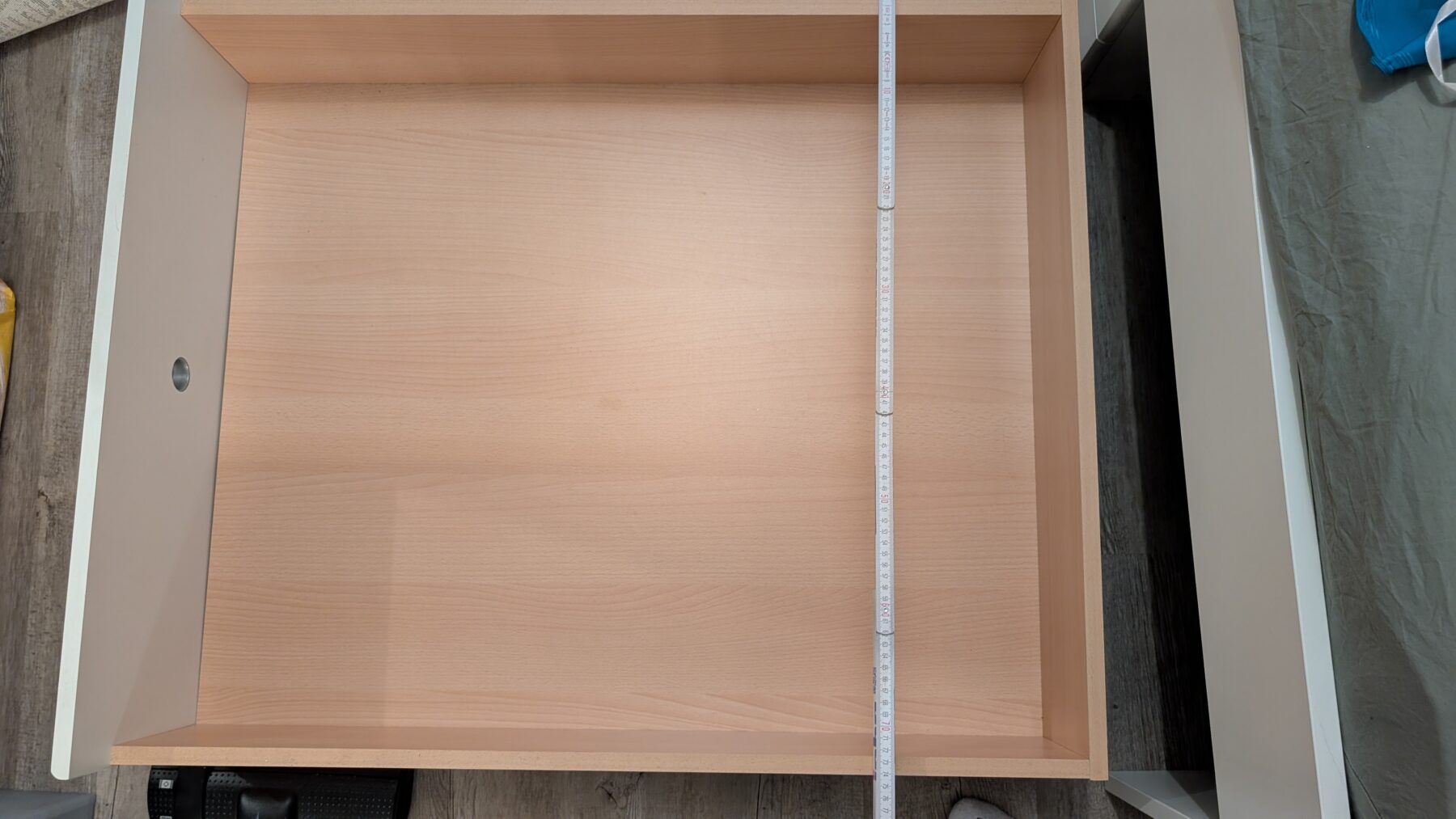 Am Korpus der kleinen Schubladen befindet sich ein kleiner Wasserschaden, der aber weder Funktionalität noch Stabilität einschränkt.
