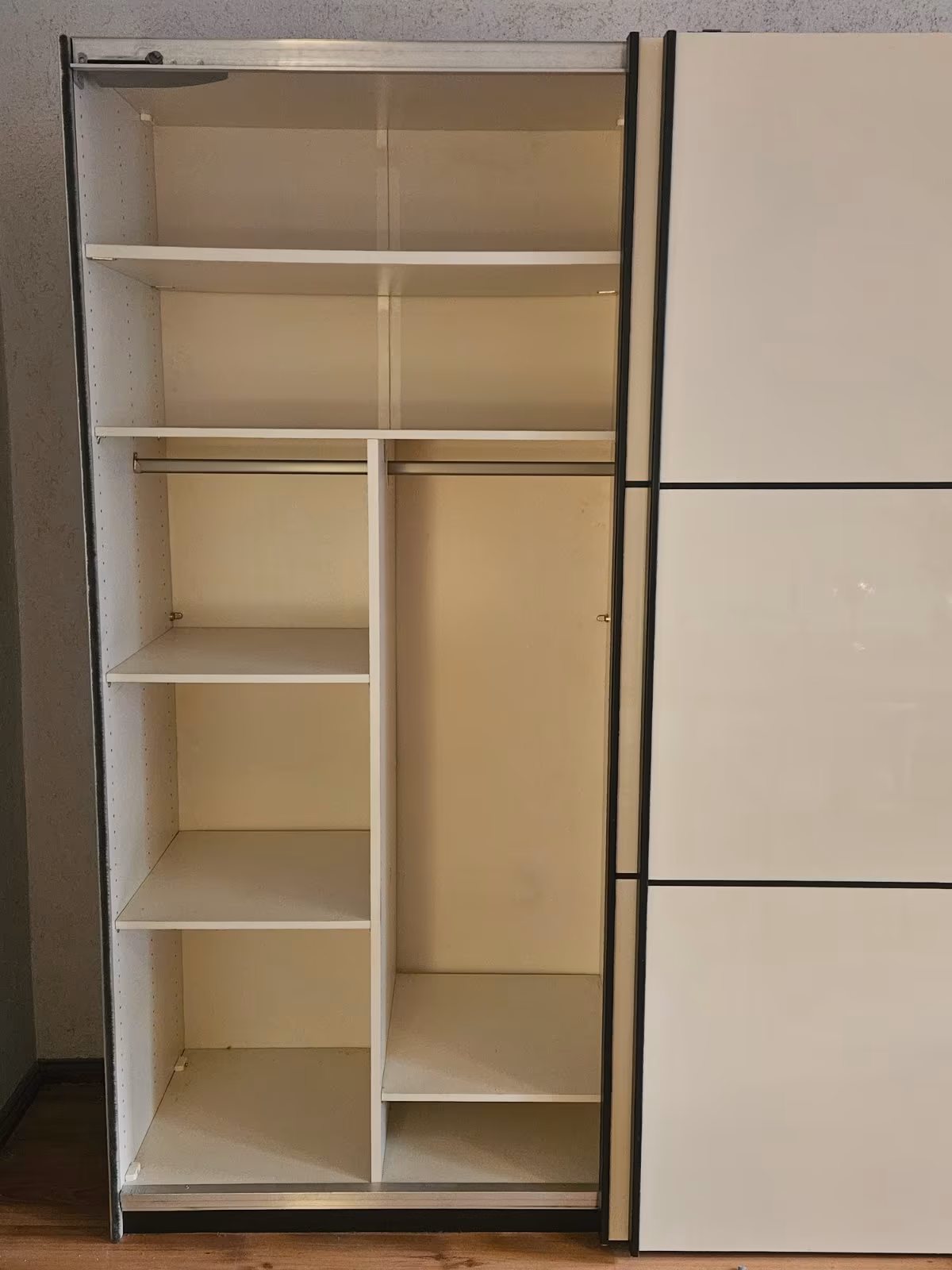 Ich verkaufe einen hochwertigen Jutzler Schwebetürenschrank in Cremeweiß mit schwarz matten Aufclip- und Dekorprofilen. Sehr gepflegter Zustand, tolle Optik (Kontrast Cremeweiß/Schwarz).