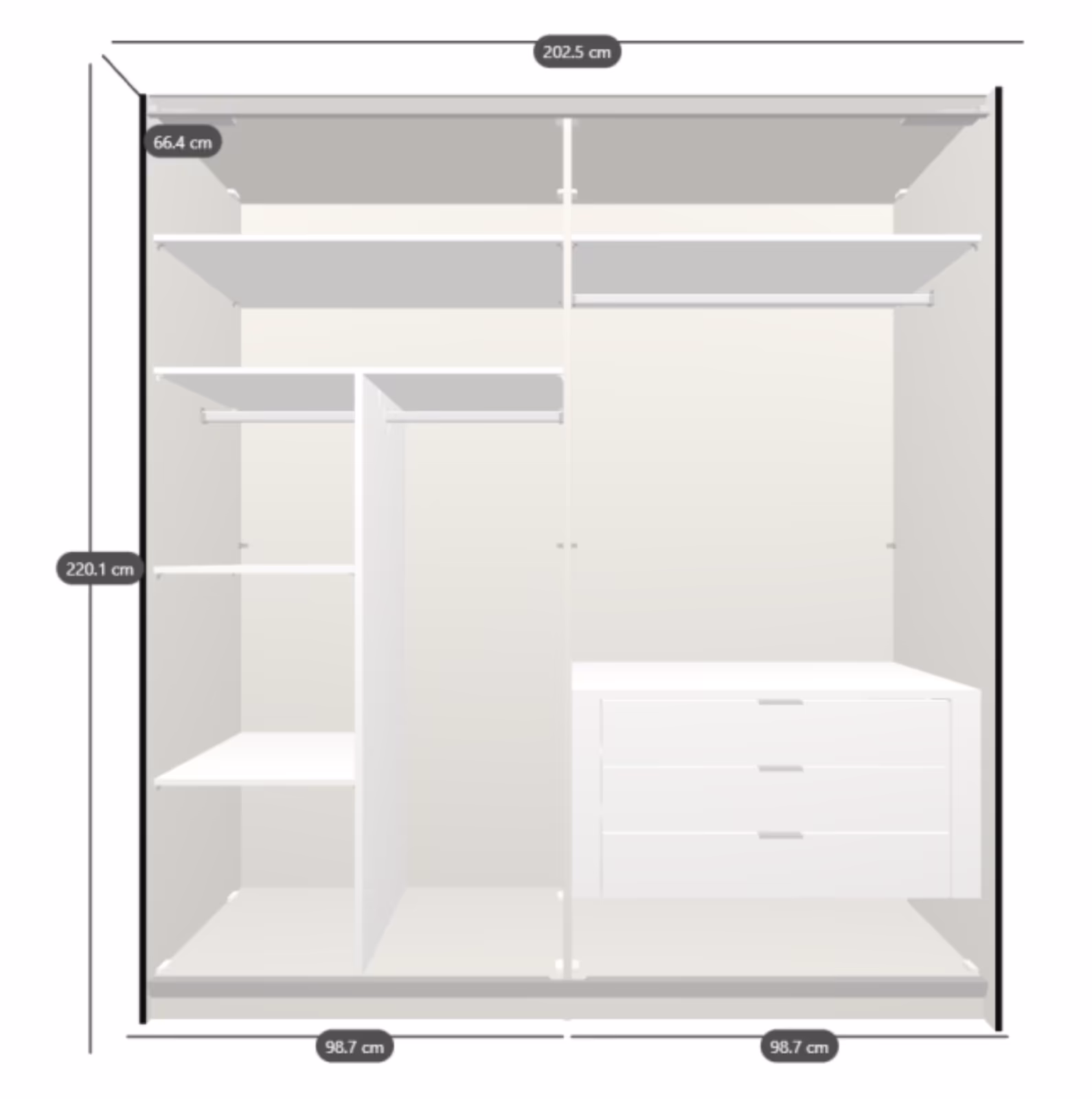 Jutzler Schwebetürenschrank 202,5×220×66,5 – Cremeweiß / Schwarz matt – Soft-Close