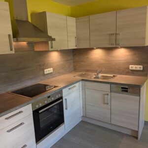 Küchenzeile im L-Format inkl. Geräten. Die Küche wurde aufgrund eines Umzugs sehr wenig genutzt und ist in einem neuwertigen Zustand. Es wurde sehr wenig gekocht.