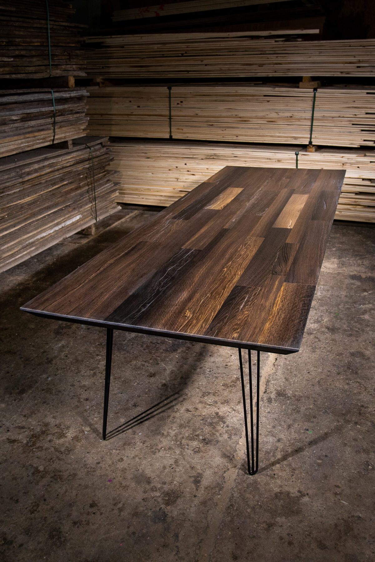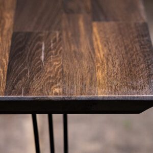 Diese fossilierte alte Eichenarbeitsplatte mit einer Geschichte von 3.000 Jahren ist eine einzigartige und exquisite Wahl, um jedem Zuhause eine zeitgenössische, zugleich authentische Note zu verleihen. Der Wert und die Seltenheit des Materials ergeben sich aus dem jahrtausendelangen Konservierungsprozess unter der Erde, der ihm bemerkenswerte, natürliche Farbtöne und außergewöhnliche Haltbarkeit verleiht. Es wird aus wenigen Metern unter der Erdoberfläche gewonnen und durchläuft einen sorgfältigen Trocknungs- und Behandlungsprozess, der es in eine einzigartige Tischplatte verwandelt.