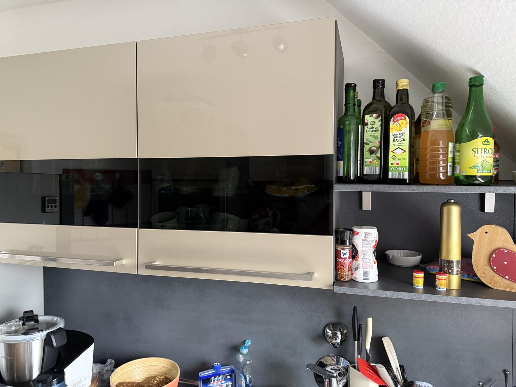 • Oberschränke und offene Regale